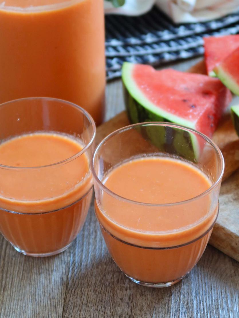 Qué rico un gazpacho bien fresquito cuando hace calor. Prepara conmigo este Gazpacho de sandía que lo mismo lo puedes servir como aperitivo, primer plato o para deleitarte con una cena bien ligera y nutritiva. Me gusta añadir fruta a los gazpachos porque les da un toque de sabor muy interesante. El secreto es contar con buenos ingredientes y, sobre todo, servirlo bien fresquito. Verás qué delicia.