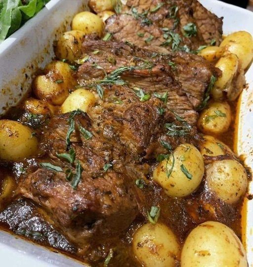¡Qué maravilla! Si buscas una receta de carne y patatas que se deshacen al primer bocado, te voy a compartir una versión tradicional, lenta y casera, como las de la abuela: cocida a fuego bajo, con sabor profundo y textura tan tierna que casi no necesitas cuchillo.