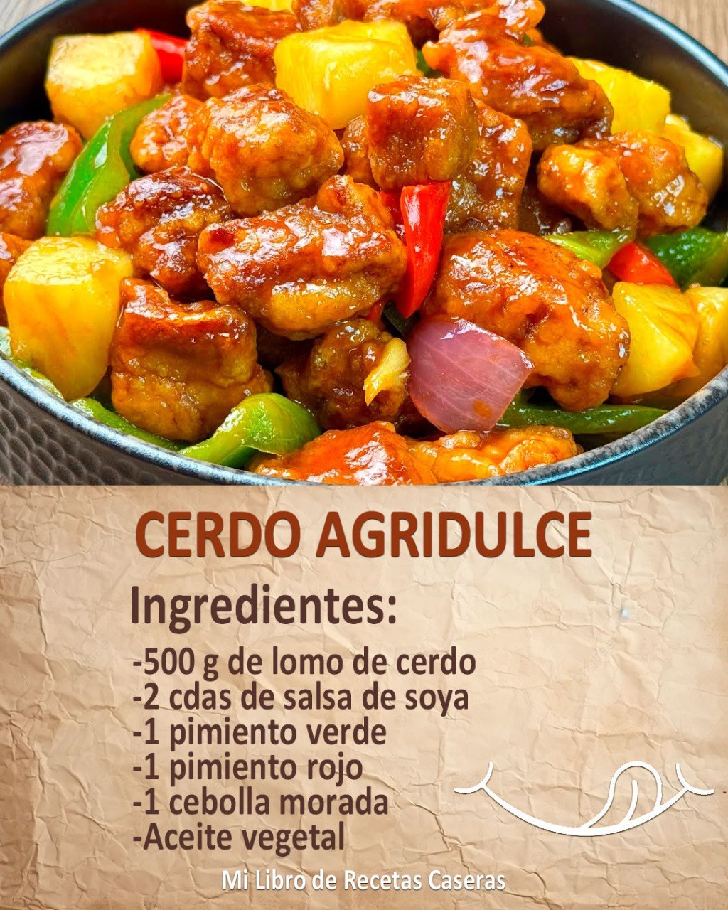 1. En un tazón, mezcla los cubos de cerdo con la salsa de soya y deja reposar por 10-15 minutos.
