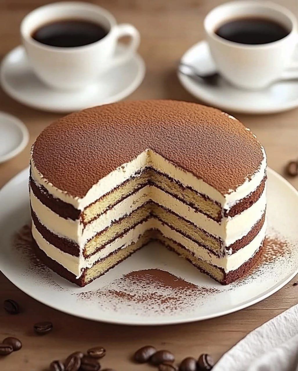 à étages tiramisu est une délicieuse variante du dessert italien classique. Ce gâteau est composé d’une génoise légère et moelleuse imbibée d’expresso, d’une garniture crémeuse au mascarpone et d’un nappage de cacao en poudre pour une saveur de tiramisu incomparable. À chaque bouchée, vous obtenez l’équilibre parfait entre un café onctueux, un mascarpone onctueux et une touche de