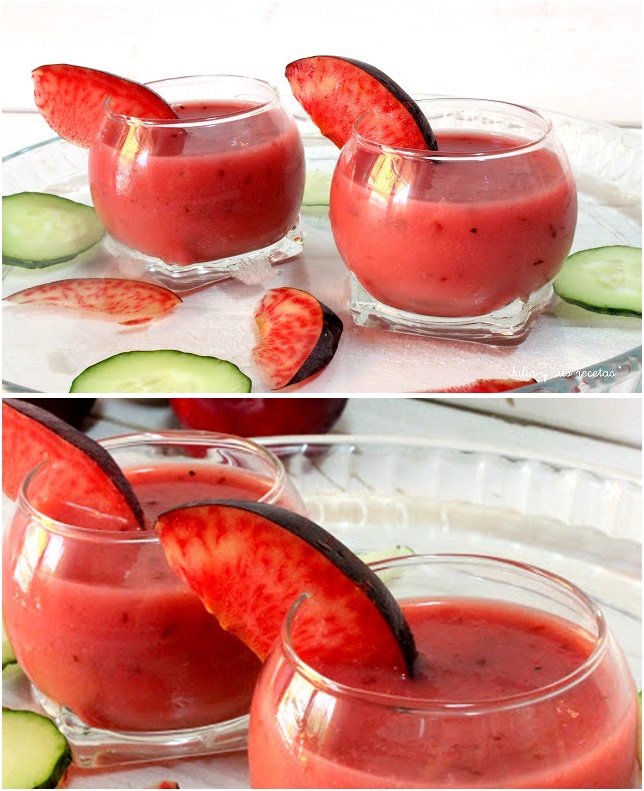 Por eso, hoy os traigo este delicioso gazpacho de ciruelas rojas y pepino, un gazpacho agridulce. El dulzor de las ciruelas casa muy bien con el resto de ingredientes aportándole un dulzor y una suavidad al gazpacho que os encantará.