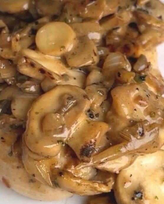 ngredientes: 4 pechugas de pollo, deshuesadas y sin piel, sal y pimienta al gusto, 2 cucharadas de aceite de oliva, 1 cebolla, picada finamente, 2 dientes de ajo, picados, 250 g de champiñones, limpios y cortados en rodajas, 1 taza de caldo de pollo, 1 taza de crema de leche, 1 cucharadita de tomillo seco (opcional), Perejil fresco, picado para decorar.