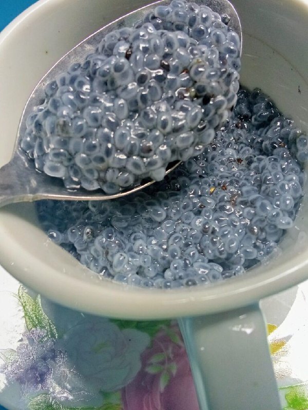La imagen muestra un tazón de semillas de chía hidratadas, un alimento cada vez más popular por su textura gelatinosa…
